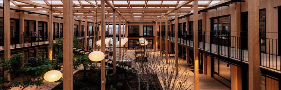WELLINGTON: A grid of thin cross-laminated timber columns frames communal spaces at the centre of…